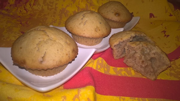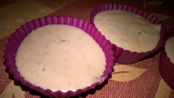 Se pune compoziția în forme de silicon și se dau brioșele la cuptorul preîncălzit la foc mediu (180 de grade) pentru aproximativ 35-40 de minute până se rumenesc ușor și trec testul scobitorii (nu se deschide cuptorul în primele 15 minute). Se lasă la răcit în forme și apoi se servesc.