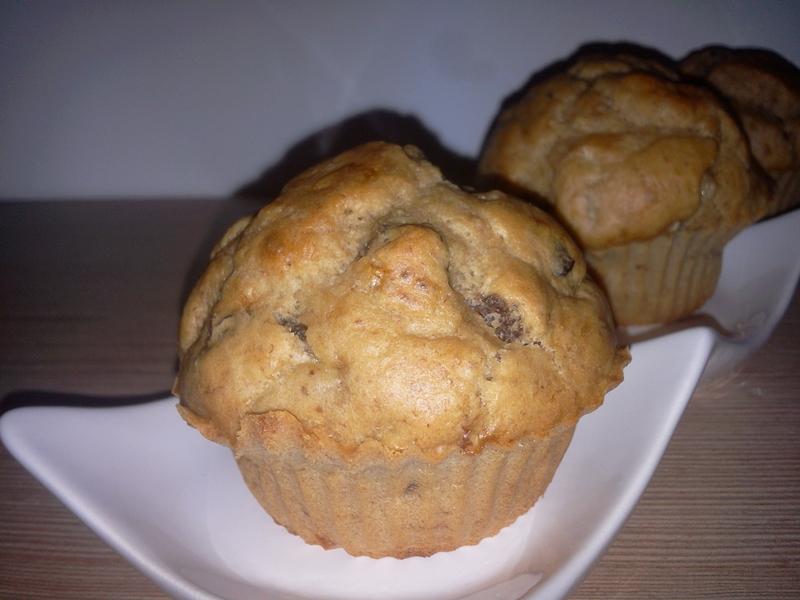 Se lasă la hidratat stafidele în apă călduță pentru 40-60 de minute. Se bat ouăle cu telul, se adaugă bananele pasate cu furculița și untul de arahide. Se adaugă praful de copt, laptele și se încorporează făina. La sfârșit se pun stafidele hidratate (se scurge surplusul de apă). Se pune compoziția în forme și se dau la cuptorul preîncălzit la foc mediu (180 de grade) pentru 35 de minute (sau până trec testul scobitorii). Se lasă la răcit în forme și apoi se servesc.