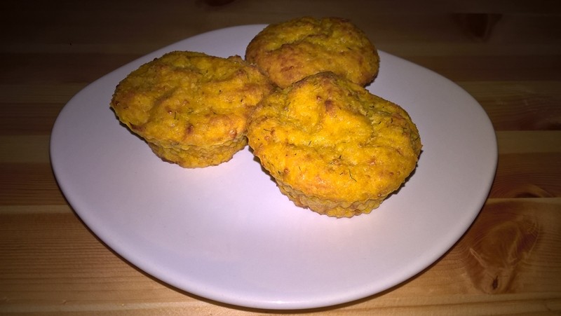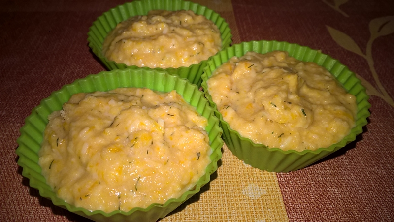 Se bate gălbenușul cu furculița. Se adaugă cașcavalul dat pe răzătoarea mică, dovleacul copt și pasat, usturoiul pisat, puțin mărar, laptele și pesmetul. Se pune compoziția în forme de silicon pentru brioșe. Se dau formele la cuptorul preîncălzit la foc mediu pentru aproximativ 25 de minute (până se rumenesc ușor).