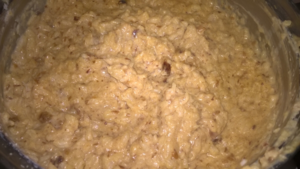Se lasă curmalele la hidratat în apă călduță pentru aproximativ o oră. Se scurge surplusul de apă, se curăță de sâmburi și se pasează.