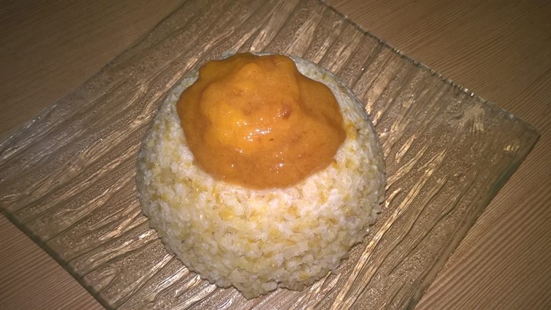 Se pune bulgurul la hidratat în apă pentru o oră. Se clătește bine, se scurge surplusul de apă și se fierbe în lapte. Se lasă pe foc amestecând constant pentru 15 minute (până se leagă bine budinca și este fiert bulgurul).