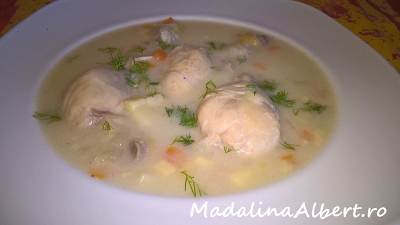 Se amestecă într-un vas separat cu un tel laptele cu făina și se adaugă treptat 2-3 polonice din zeama din vas (opțional se poate adăuga în această compoziție și 150g. smântână). Se amestecă bine compoziția și se adaugă în vas amestecând ușor cu o lingură. Se lasă pe foc mic până sosul se îngroașă, se adaugă sare după gust și condimente și se oprește focul. Se stropește cu puțin ulei de măsline, se presară mărar și se servește (noi am servit cu mămăligă și mujdei de usturoi).