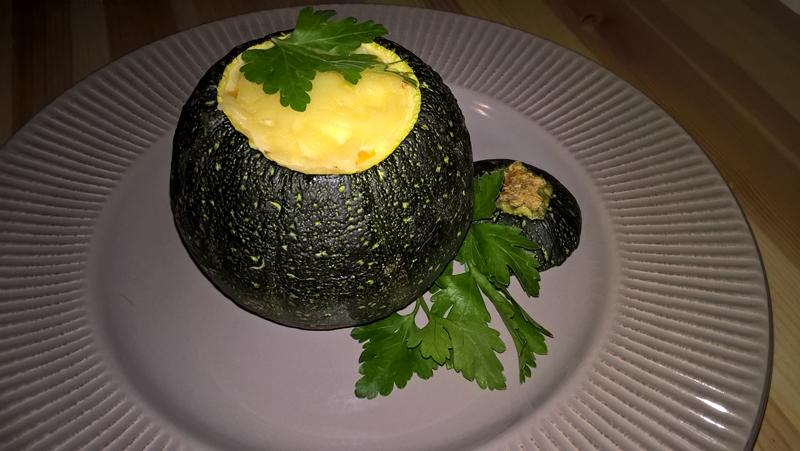 Se decupează un capac pentru dovlecel și se scobește miezul cu o lingură.