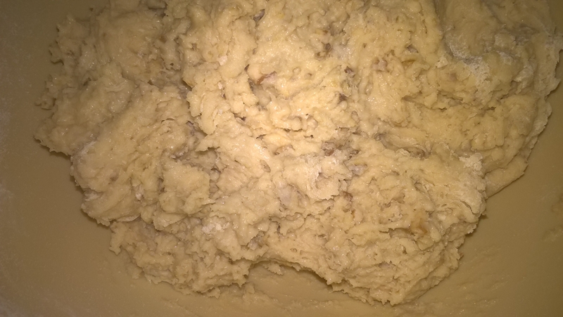Se spală miezul de nucă și se lasă la înmuiat 2-3 ore. Se scurge surplusul de apă și se macină (eu am preferat o textură mai grosieră). Se amestecă oul cu untul la temperatura camerei, se adaugă zahărul brut, iaurtul și bicarbonatul. Se încorporează făina și se presară puțină scorțișoară. La sfârșit se adaugă nuca. Se trec mâinile sub jet de apă și se formează mici biluțe de aluat care se aplatizează ușor. Se așează pe hârtie de copt în tavă și se presează ușor cu o furculiță. Se dă tava la cuptorul preîncălzit la foc mediu pentru 15-20 de minute. Se lasă fursecurile la răcit în tavă și apoi se servesc.