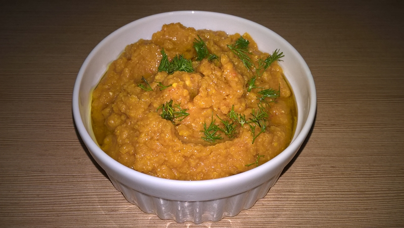 Se toacă mărunt ceapa și usturoiul și se pun într-o tigaie cu roșiile pasate. Se lasă pe foc mic până se înmoaie legumele, apoi se adaugă năutul fiert și condimentele (se adaugă din apa oprită până la consistența dorită). Se lasă pe foc câteva minute până se îmbină aromele, apoi se ia vasul deoparte, se adaugă uleiul de măsline și se pasează compoziția.
