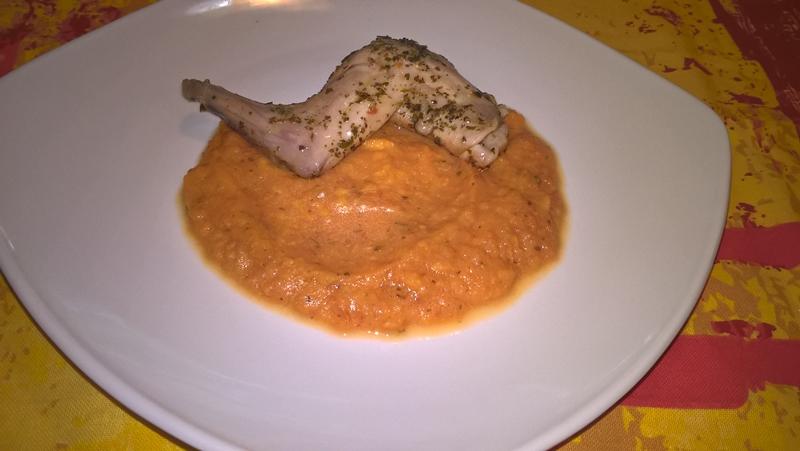 Se pasează legumele și se servesc cu pulpa de iepure.