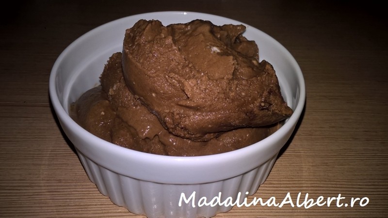 Se scot din congelator, se amestecă cu iaurt și se pasează compoziția până se obține o textură fină. Se adaugă mierea, puțin extract de vanilie și carobul și se mai pasează până sunt bine încorporate ingredientele.