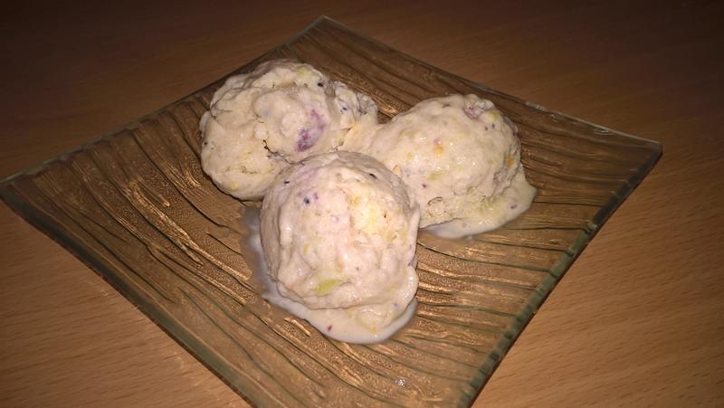 Se pune compoziția într-o caserolă și se dă la congelator pentru una-două ore, apoi se servește.