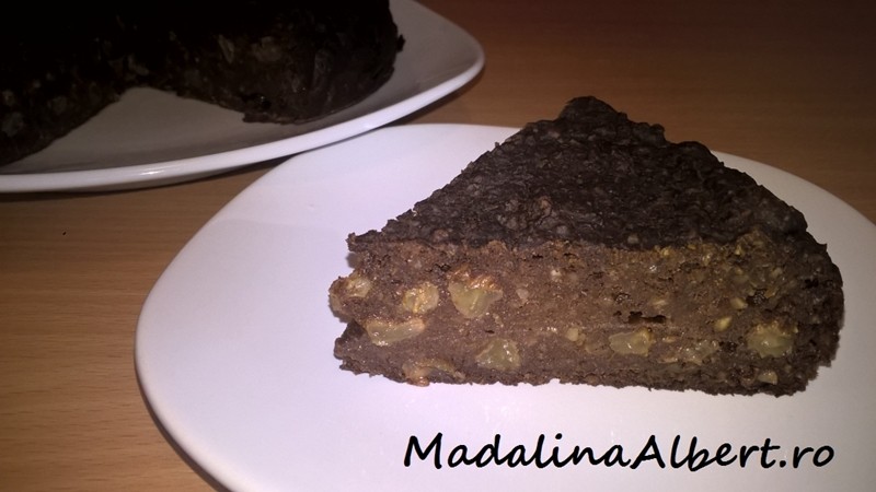 Se lasă la răcit și se servește. Prăjitura are textură densă.