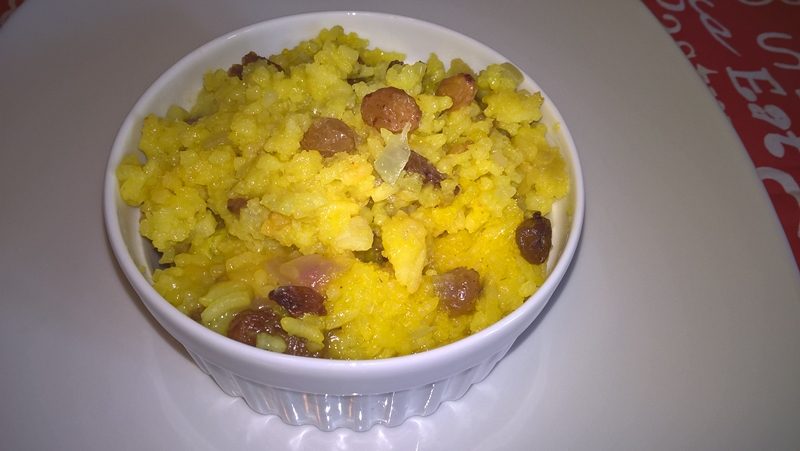 Se toacă ceapa și usturoiul mărunt și se pun la fiert cu jumătate de cană apă. După 10 minute se adaugă orezul și se completează cu 3 căni de apă. Se amestecă orezul cu legumele, se adaugă apa cu șofranul deasupra (nu se mai amestecă), se acoperă vasul și se lasă pe foc mic pentru 20 de minute.