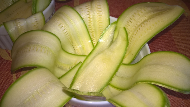 Se spală bine dovlecelul și se feliază subțire (ca pentru chipsuri).
