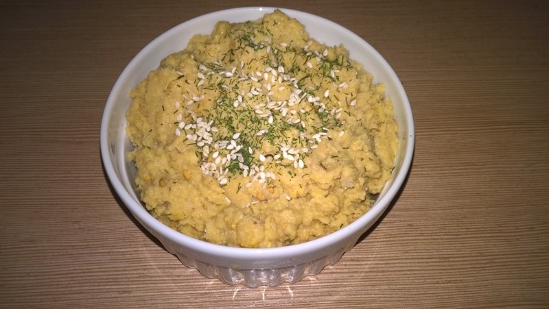 Se pasează vinetele cu boabele de năut (se poate adăuga puțină apă dacă doriți pateul mai subțire – eu nu am considerat că este necesar). Se adaugă uleiul de măsline, zeama de lămâie și condimente după gust (se pot măcina semințele de susan).