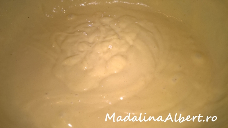 Se dă prăjitura la cuptorul preîncălzit la foc mediu (180 de grade) pentru aproximativ 40-45 de minute (până se rumenește frumos li trece testul scobitorii). Nu se deschide cuptorul în primele 20 de minute.