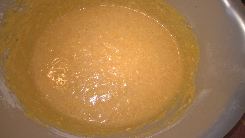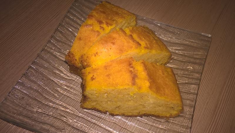 Se mixează untul la temperatura camerei cu cele 3 ouă și zahărul brut. Se încorporează dovleacul copt (pasat înainte) și laptele. Se adaugă praful de copt, vanilia și se cerne făina, se încorporează ingredientele.