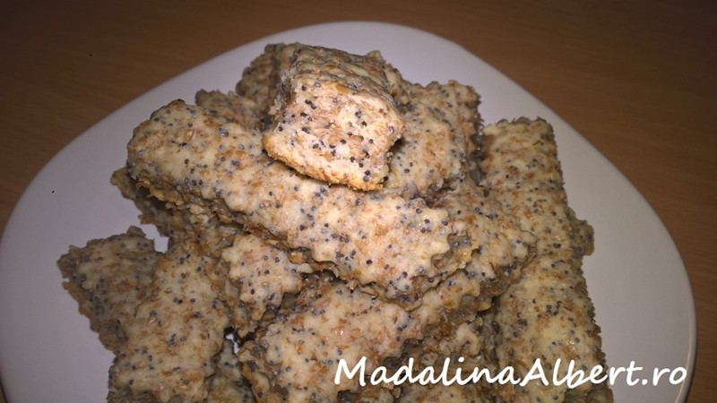 Se amestecă brânza de burduf cu untul moale la temperatura camerei, oul și smântâna. Se adaugă semințele de mac și se încorporează etapizat făina albă amestecată cu praful de copt și făina integrală (opțional puteți adăuga puțină sare – eu nu am considerat că este nevoie).