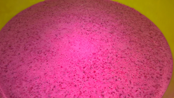 Se pun sfecla, brânza de vaci, iaurtul și oul în blender și se pasează. Se pune compoziția într-un vas de silicon (dacă folosiți alt tip de vas termorezistent se tapetează înainte cu unt și pesmet sau cu hârtie de copt și apoi se adaugă compoziția).
