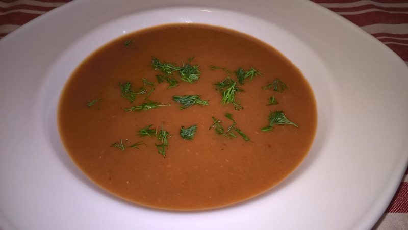 Se ia o parte din zeamă deoparte, se pasează supa cu un blender și se completează până la consistența dorită. La sfârșit se adaugă ulei de măsline și mărar.