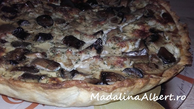 Se pune compoziția, se nivelează și se dă tarta la cuptorul preîncălzit la foc mediu (180 de grade) pentru aproximativ 40-45 de minute (până se rumenește ușor).